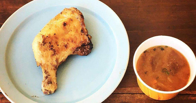地元のしょうゆと麹がベースのソースで仕上げた、ジューシーでやわらかなチキンは、低温でじっくり香ばしく炭火で焼かれたクセになる味わい。