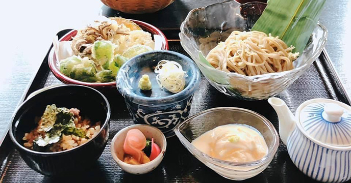 御用邸近くの緑豊かな場所にある落ち着いた蕎麦店。日光の水を使用した旬の蕎麦をこだわりのつゆで堪能する。