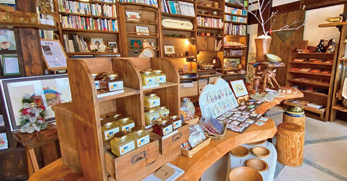 裏通りにある築100年の古民家を修復したアートの香り漂う和の雑貨店。画家・香川大介氏の工房・個人美術館も兼ねている。